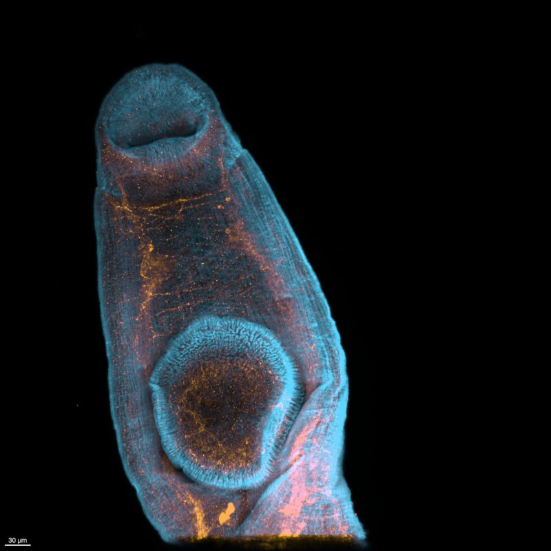 Contest Entries Upload photo Rules & Prizes Your Images Top 10 Log inContest is finished!Title: Cephalic Ganglia of a SchistosomeAuthor: Claudia RohrVotes: 0Views: 172Description: Adult S. mansoni stained with a TRPM antibody (yellow) and phalloidin (blue). Image was acquired on a Andor BC43 at 20x magnification. Copy